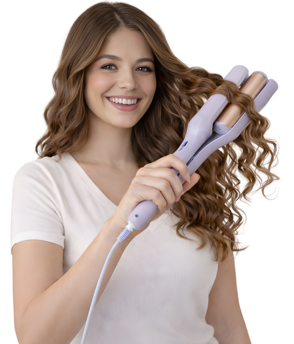 Place a small section of hair between the clamp and gently press. The heat is distributed evenly, creating defined waves without damaging your hair . Separate the clamp and continue with the next section. Let the curling iron do the work for you , effortlessly.